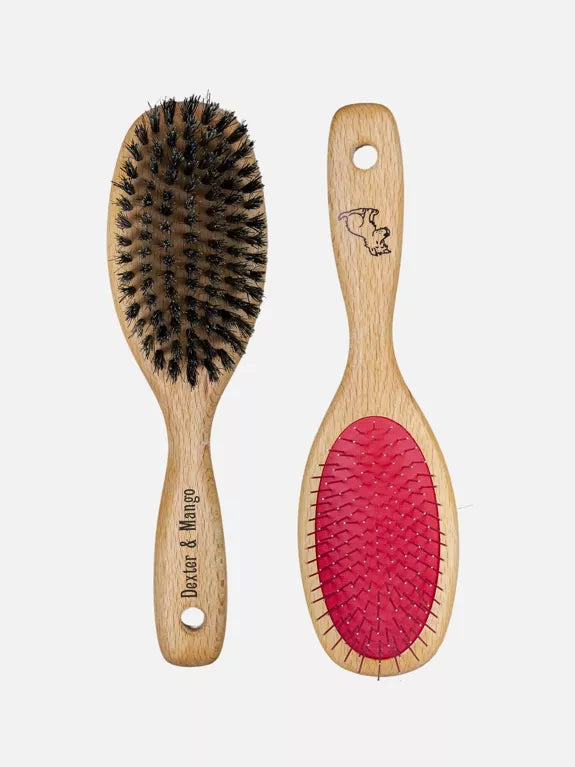 Letar du efter en bra hundborste som klarar både underull, tovor och smuts – utan att slita på din hunds päls? Då är Dexter & Mangos dubbelsidiga borste precis vad du behöver! Den här dubbelsidiga hundborsten är tillverkad i oljat bokträ, är ergonomisk och tillverkad i Tyskland med hållbarhet i fokus.